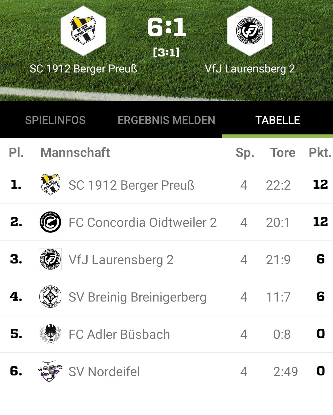 Das abschließende Gruppenspiel gegen den punktgleichen FC Concordia Oidtweiler am 04.10. entscheidet nun nur noch über Platz 1 in der Tabelle – beide Mannschaften sind bereits sicher aufgestiegen. Es verspricht dennoch ein spannendes Duell um den Gruppensieg zu werden.