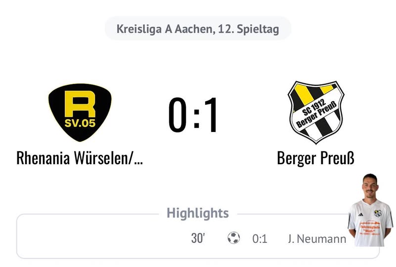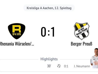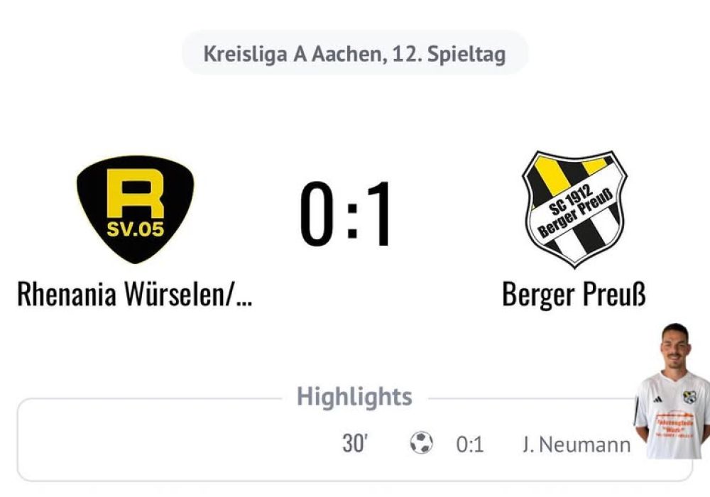 Unsere Erste gewinnt heute bei Rhenania Würselen/Euchen mit 1:0 und fährt drei wichtige Punkte ein! Das Tor des Tages erzielte Justin Neumann in der 30. Spielminute.